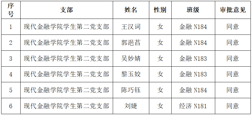 经票决,一致同意王汉词等6名同志按期转为中共正式党员,具体名单如下: