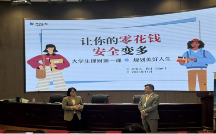 为帮助大学生树立科学的消费观与理财观,破解 “月光” 困境,掌握实用的资金管理技巧,让有限的零花钱实现 “安全增值”,11 月17日晚上,现代金融学院学生会、金融理财协会联合大都会人寿保险公司(MetLife)成功举办 “解锁财富密码 —— 大学生理财第一课,规划美好人生” 主题讲座。本次经融大讲堂特邀大都会人寿资深理财顾问韩计(Sam)担任分享嘉宾,他兼具喜剧人风趣幽默的表达风格与保险人专业严谨的行业素养,为大一的100余名学生带来了一场干货满满、趣味十足的理财知识盛宴。